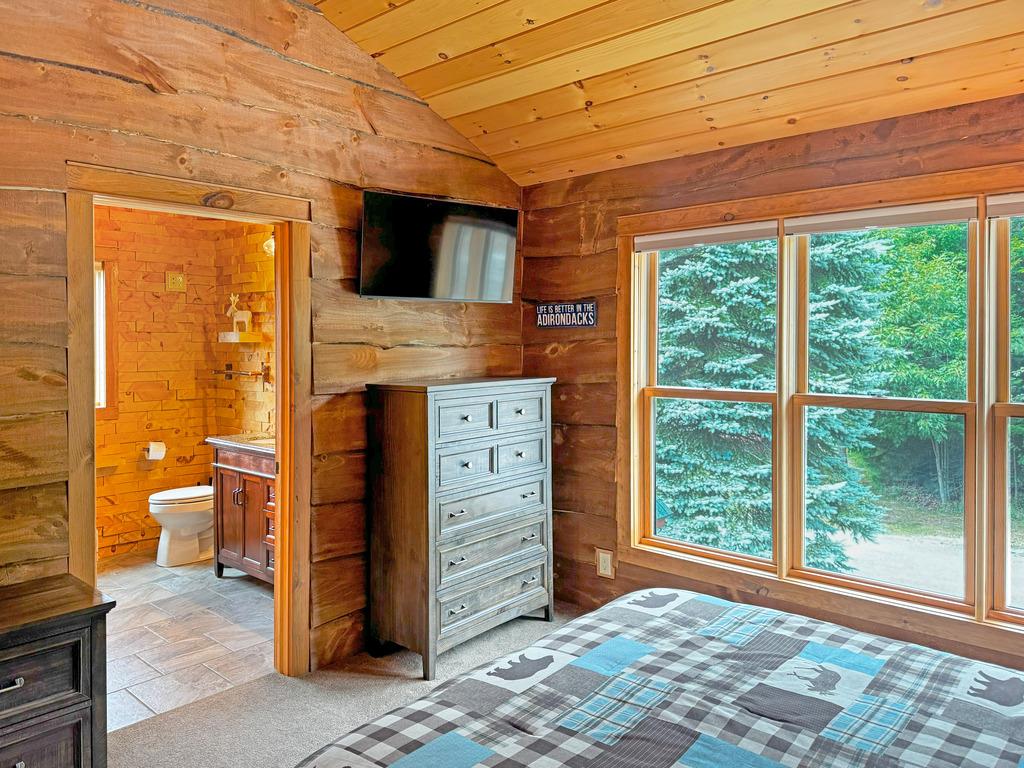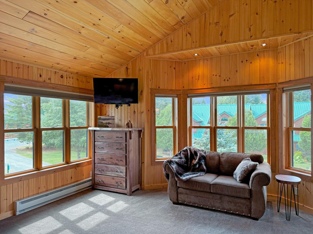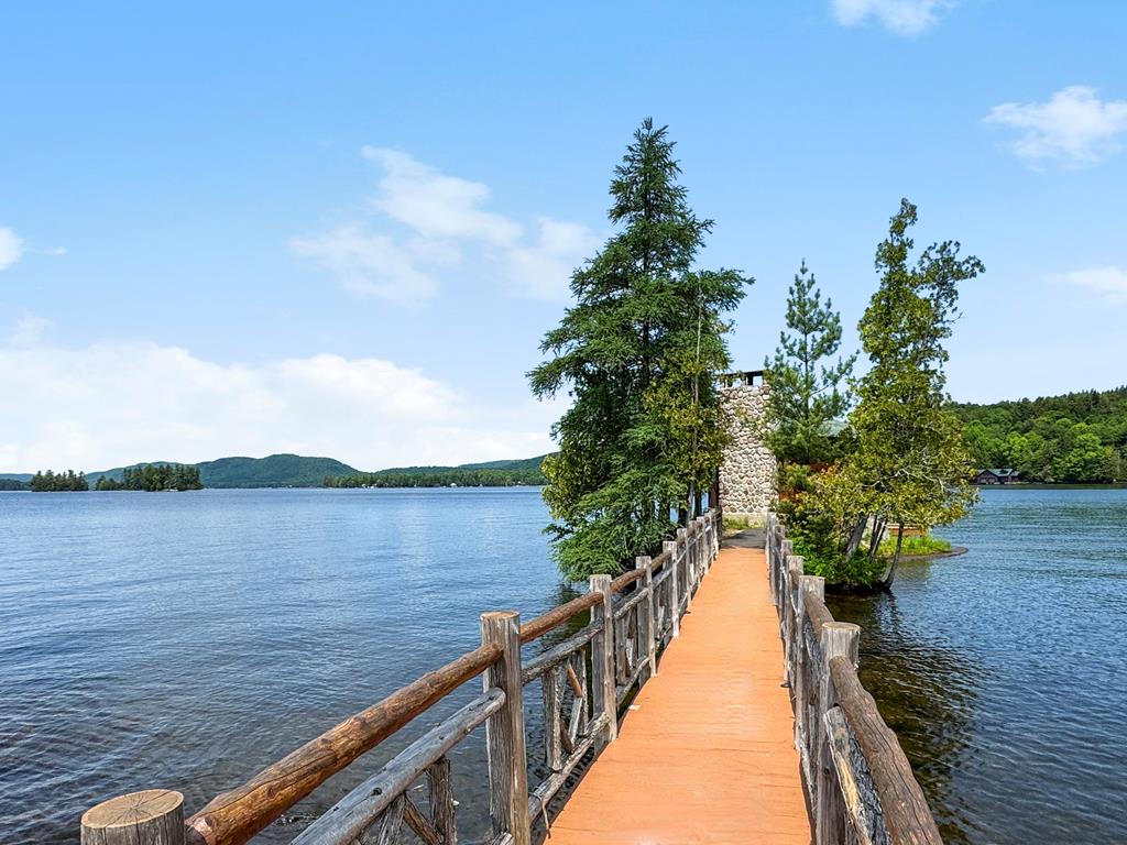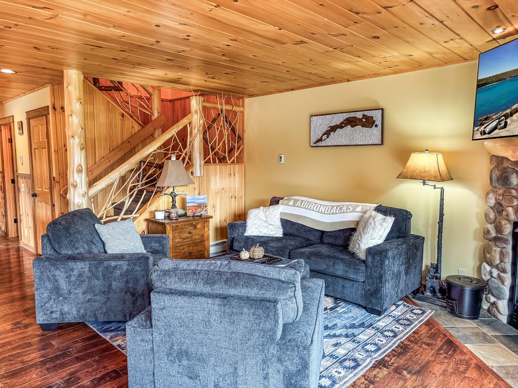 Experience refined Adirondack living in Townhome E1 at Rocky Point, a spacious end-unit luxury vacation rental in Inlet, NY, just steps from 4th Lake. This beautifully designed Adirondack townhome features a bright, open great room with stone wood-burning fireplace, 3 bedrooms, a third floor loft and 3 full spa-inspired bathrooms. The primary suite offers a king-size bed with a custom vanity and walk-in shower, while the upstairs guest suite includes a queen bed and a bathroom with soaking tub and shower. The third floor loft provides 3 twin beds with a twin trundle, and the first floor guest bedroom offers a queen bed, making this rental ideal for group getaways and extended stays in the Adirondacks. The chef-inspired kitchen is fully equipped with stainless steel appliances, quartz countertops, and a large island that doubles as both a prep station and gathering space. Throughout the home, guests will enjoy distintive custom wood accents, hardwood floors on the main level, flat screen smart TV's, and a washer & dryer for convenience. Step outside to a private deck overlooking the tennis courts, a peaceful spot for morning coffee, evening cocktails, or simply soaking in the Adirondack scenery. As a guest of Rocky Point, you'll enjoy exclusive access to premier resort-style amenities, including a 1,500 foot sandy beach on 4th Lake, 3 tennis courts, a beach vollyball court, an island gazebo with a wood-burning fireplace, and an indoor pool and spa. Whether you're planning a summer lakefront escape, a fall foliage trip, a winter ski retreat, or a spring Adriondack getaway, Townhome E1 at Rocky Point offers the perfect vacation rental in Inlet, NY.