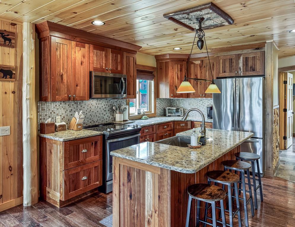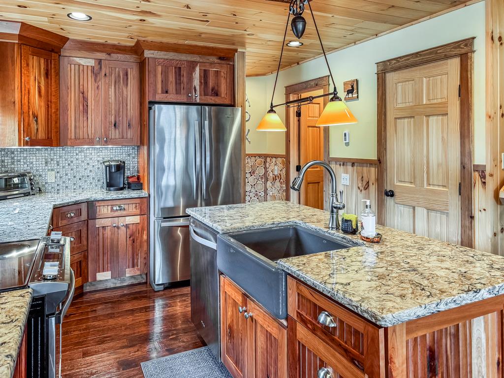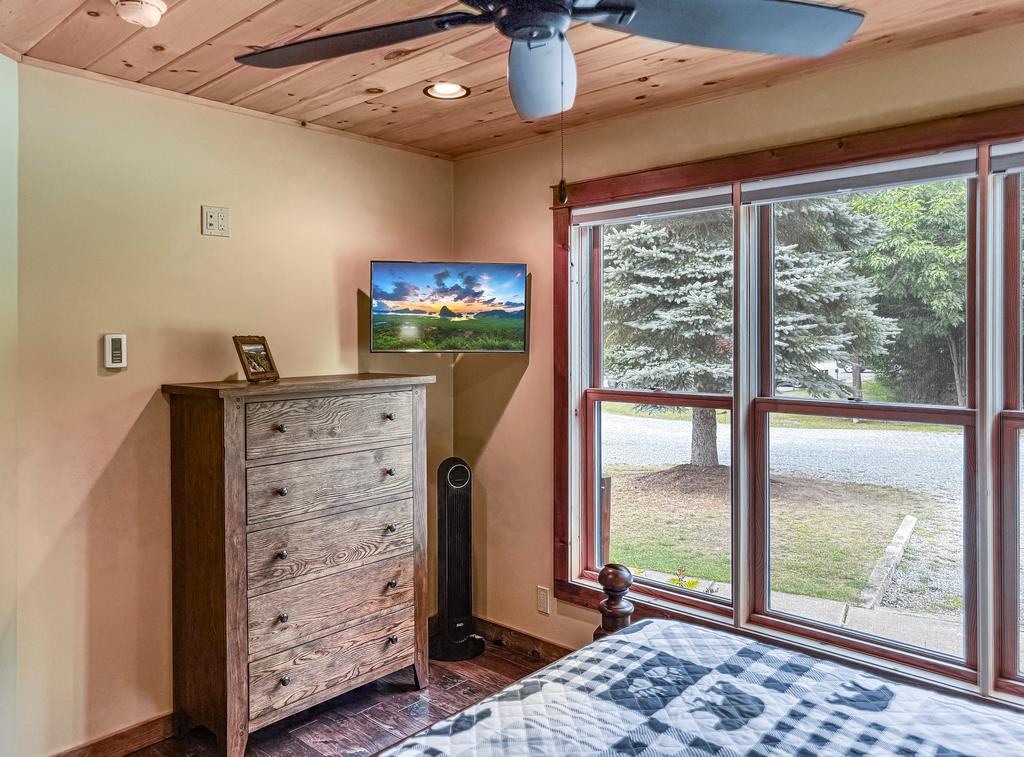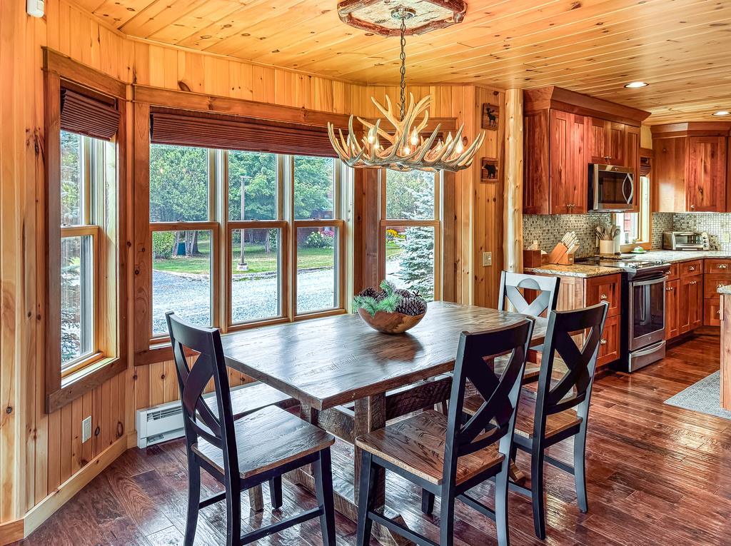 Experience refined Adirondack living in Townhome E1 at Rocky Point, a spacious end-unit luxury vacation rental in Inlet, NY, just steps from 4th Lake. This beautifully designed Adirondack townhome features a bright, open great room with stone wood-burning fireplace, 3 bedrooms, a third floor loft and 3 full spa-inspired bathrooms. The primary suite offers a king-size bed with a custom vanity and walk-in shower, while the upstairs guest suite includes a queen bed and a bathroom with soaking tub and shower. The third floor loft provides 3 twin beds with a twin trundle, and the first floor guest bedroom offers a queen bed, making this rental ideal for group getaways and extended stays in the Adirondacks. The chef-inspired kitchen is fully equipped with stainless steel appliances, quartz countertops, and a large island that doubles as both a prep station and gathering space. Throughout the home, guests will enjoy distintive custom wood accents, hardwood floors on the main level, flat screen smart TV's, and a washer & dryer for convenience. Step outside to a private deck overlooking the tennis courts, a peaceful spot for morning coffee, evening cocktails, or simply soaking in the Adirondack scenery. As a guest of Rocky Point, you'll enjoy exclusive access to premier resort-style amenities, including a 1,500 foot sandy beach on 4th Lake, 3 tennis courts, a beach vollyball court, an island gazebo with a wood-burning fireplace, and an indoor pool and spa. Whether you're planning a summer lakefront escape, a fall foliage trip, a winter ski retreat, or a spring Adriondack getaway, Townhome E1 at Rocky Point offers the perfect vacation rental in Inlet, NY.