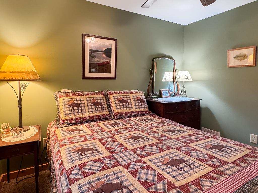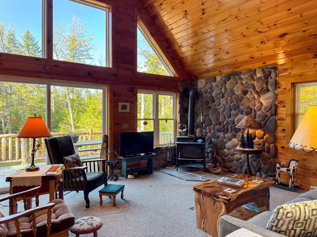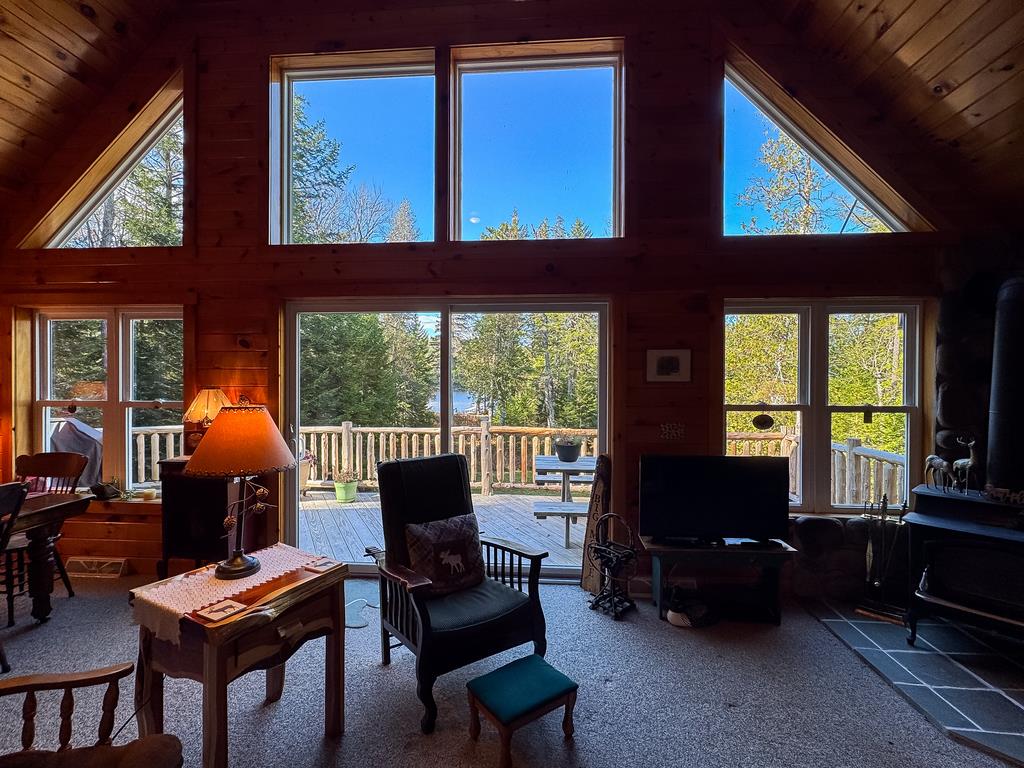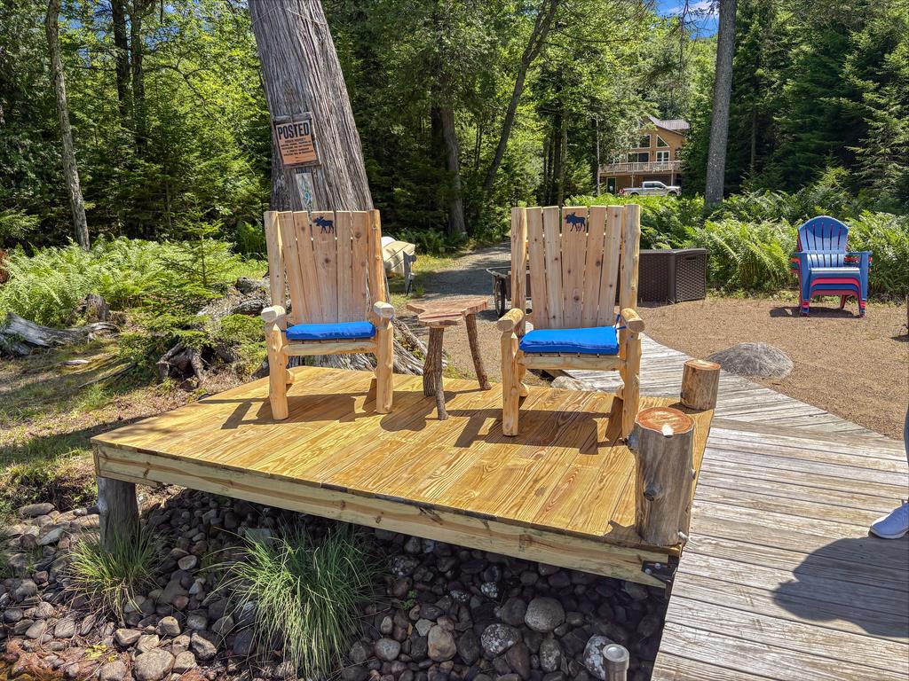 Enjoy the beauty of the Adirondacks in this 3-bedroom, 2-bath lakefront home on Big Moose Lake. Blending rustic charm with modern comfort, this inviting retreat offers everything you need for a relaxing getaway. The open-concept main living area features a fully equipped kitchen, dining area and cozy living room beneath cathedral ceilings and floor-to-ceiling windows overlooking the lake. The kitchen includes knotty pine cabinetry, a center island, and all the essentials for cooking and entertaining. Two bedrooms are located on the first floor, one with a queen bed and another with two twin beds, ideal for families or guests who prefer single-level living. Upstairs, the loft-style primary bedroom features a king-size bed and peaceful lake views. Step outside to a large screened-in porch, perfect for morning coffee or evening cocktails, or relax on the spacious deck overlooking the water. Follow the stone path lined with ferns down to the private shoreline, where you'll find a sandy swimming area and dock for boating, fishing, or simply enjoying the views. Spend your days kayaking, canoeing or water-skiing, and your evenings gathered around the fire pit under the stars. This Adirondack lakefront home includes modern amenities such as WI-FI, TV, cable, air conditioning, washer/dryer, gas grill, and a lakeside firepit.