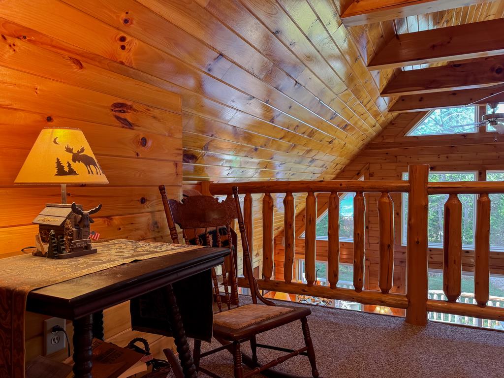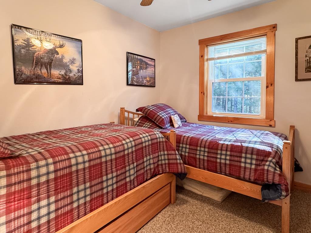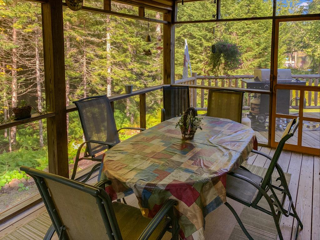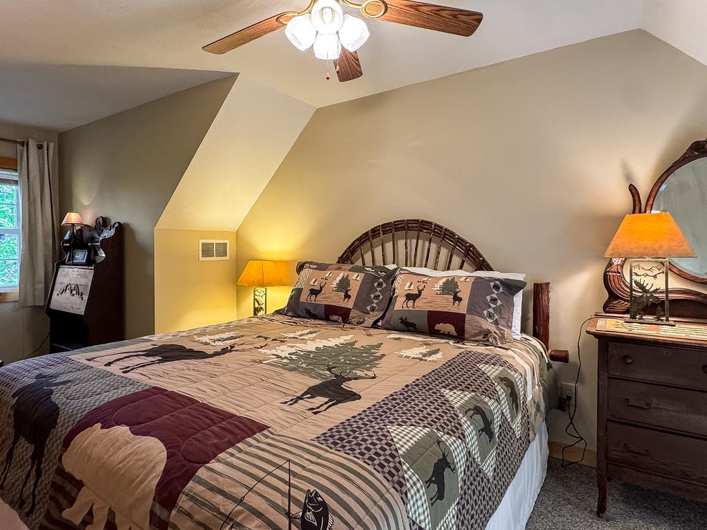 Enjoy the beauty of the Adirondacks in this 3-bedroom, 2-bath lakefront home on Big Moose Lake. Blending rustic charm with modern comfort, this inviting retreat offers everything you need for a relaxing getaway. The open-concept main living area features a fully equipped kitchen, dining area and cozy living room beneath cathedral ceilings and floor-to-ceiling windows overlooking the lake. The kitchen includes knotty pine cabinetry, a center island, and all the essentials for cooking and entertaining. Two bedrooms are located on the first floor, one with a queen bed and another with two twin beds, ideal for families or guests who prefer single-level living. Upstairs, the loft-style primary bedroom features a king-size bed and peaceful lake views. Step outside to a large screened-in porch, perfect for morning coffee or evening cocktails, or relax on the spacious deck overlooking the water. Follow the stone path lined with ferns down to the private shoreline, where you'll find a sandy swimming area and dock for boating, fishing, or simply enjoying the views. Spend your days kayaking, canoeing or water-skiing, and your evenings gathered around the fire pit under the stars. This Adirondack lakefront home includes modern amenities such as WI-FI, TV, cable, air conditioning, washer/dryer, gas grill, and a lakeside firepit.